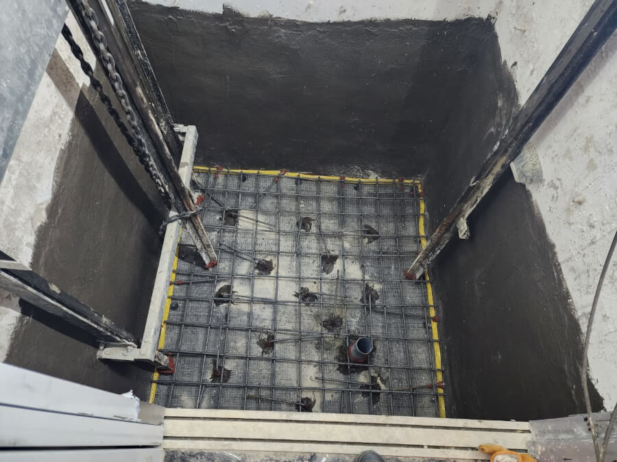 Lavori di impermeabilizzazione della fossa ascensore sito a Tirana ini Albania.