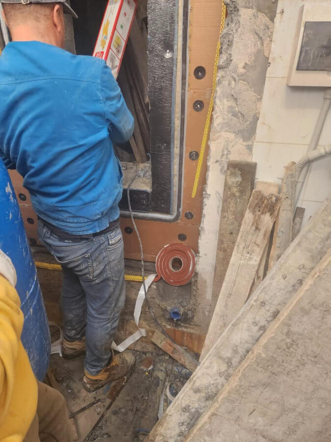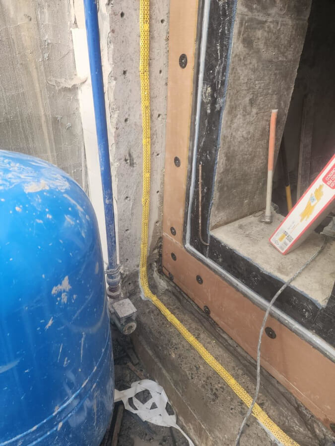 Lavori di impermeabilizzazione dell’intercapedine su muro sito a Tirana in Albania.